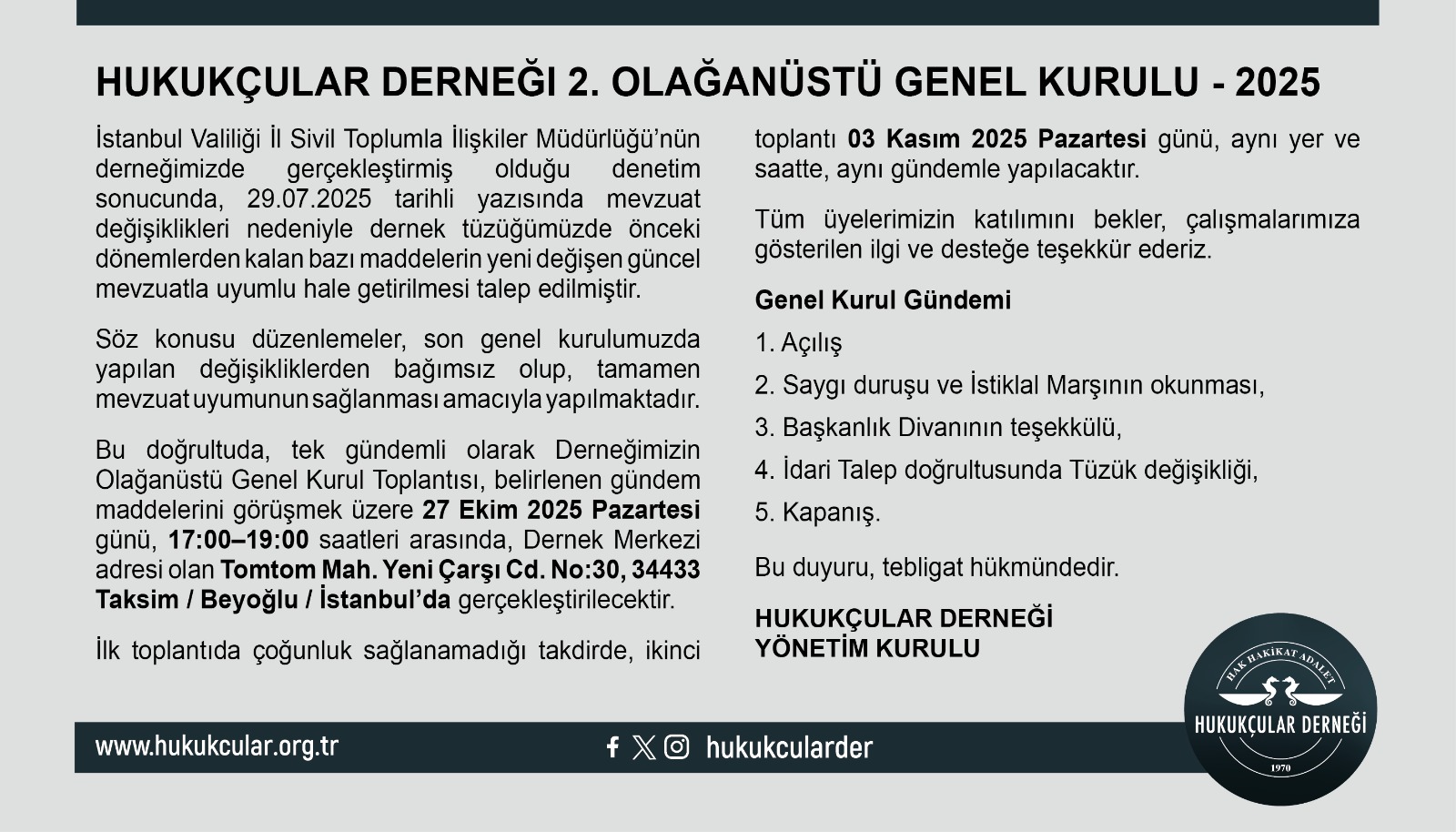 Hukukçular Derneği 2. Olağanüstü Genel Kurulu – 2025
